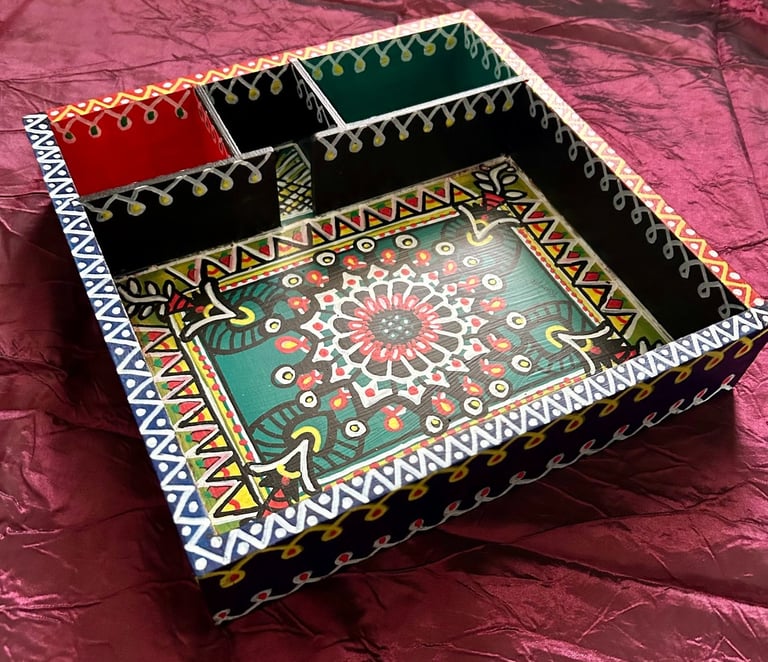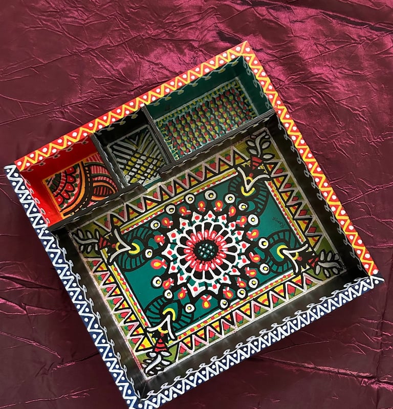 Witness the evolution of Madhubani art. Once confined to home walls as murals in ancient times, it now gracefully extends its presence to diverse mediums—paper, cloth, wood, terracotta, ceramic, and beyond. Immerse your living space in the charm of my unique home decor items, meticulously crafted as one-of-a-kind pieces tailored to satiate your creative appetite. These are more than mere decorations; they are captivating eye-catchers poised to grace and elevate the beauty of your home!