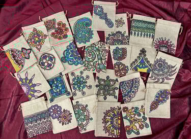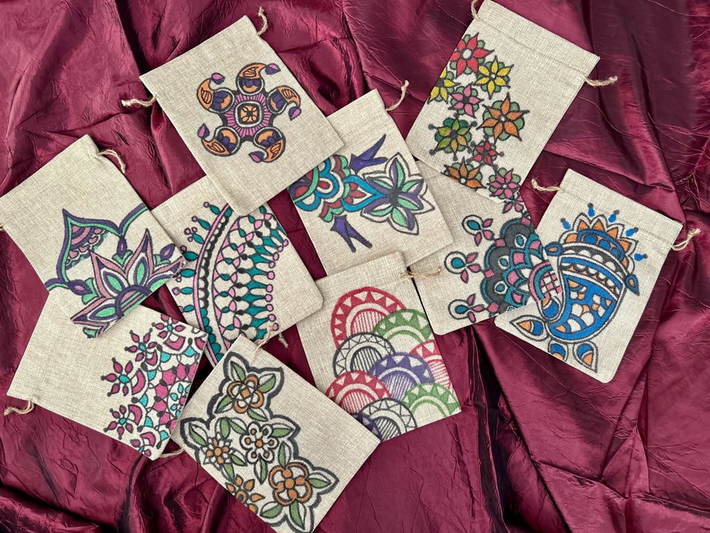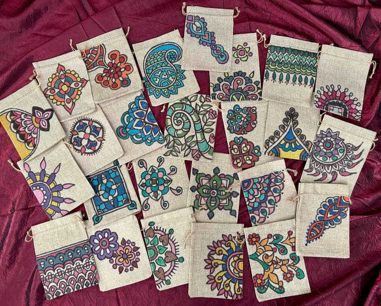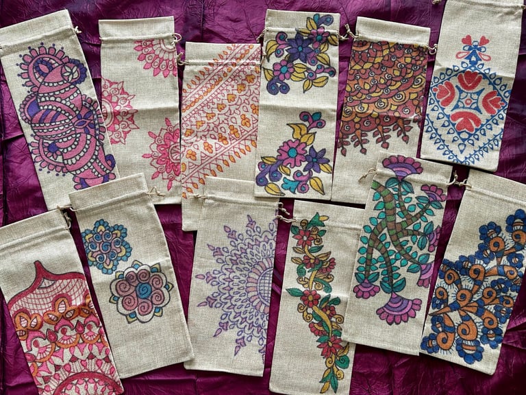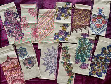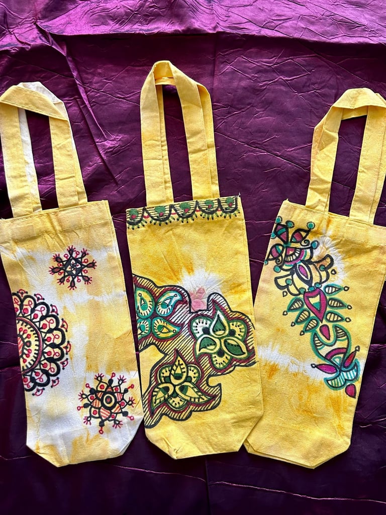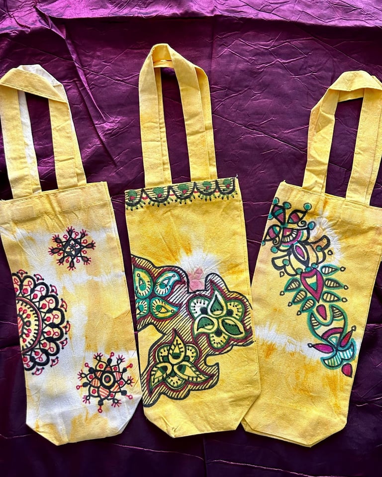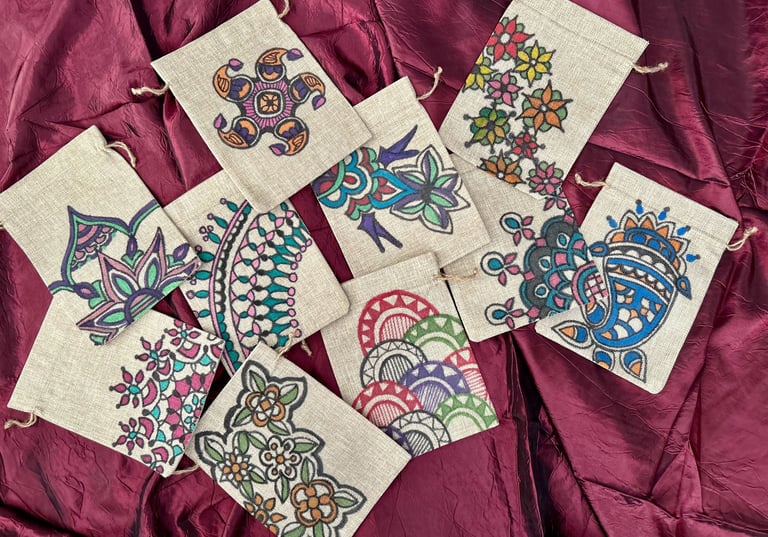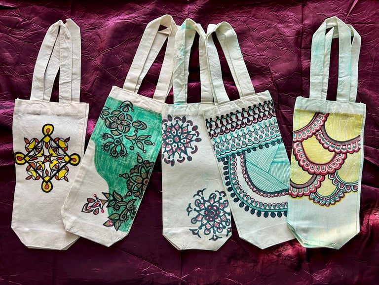 Celebrate the festive season with the popularity of sustainable gift bags inspired by Madhubani and Mandala art. From Navarathri to Christmas, these sought-after bags are favored by art enthusiasts who choose them as thoughtful gifts for friends and family. Each bag is customized upon order, featuring unique and organic patterns that add a special touch to your gifting experience.