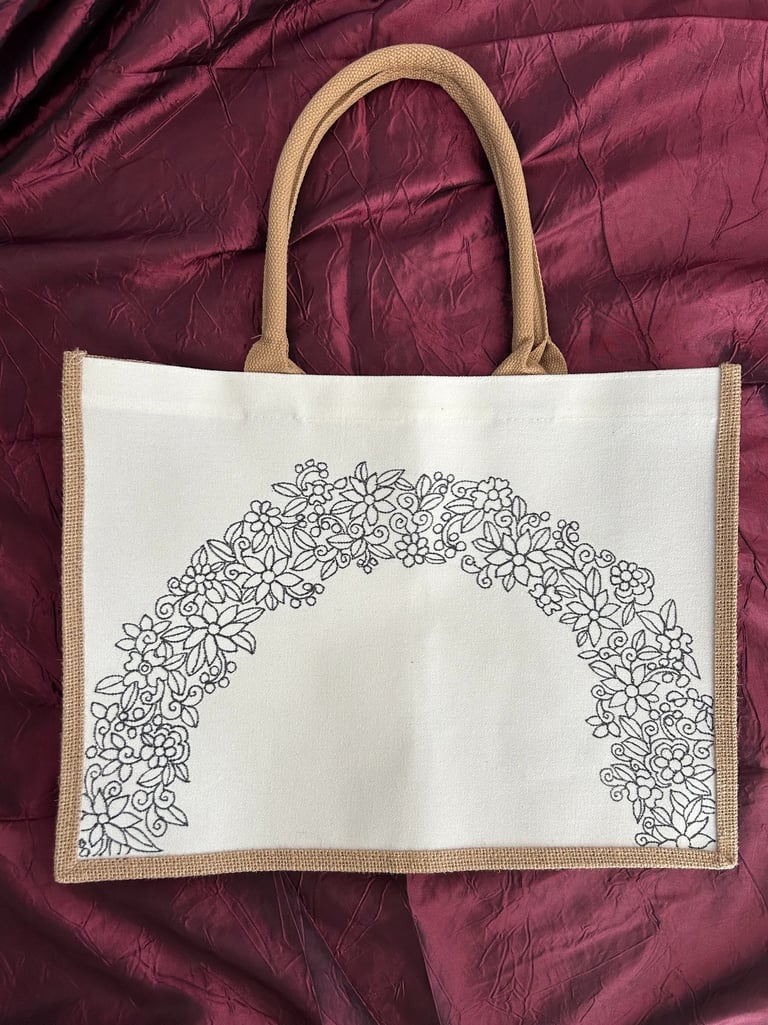Tote Bag with Hand Painted Motifs