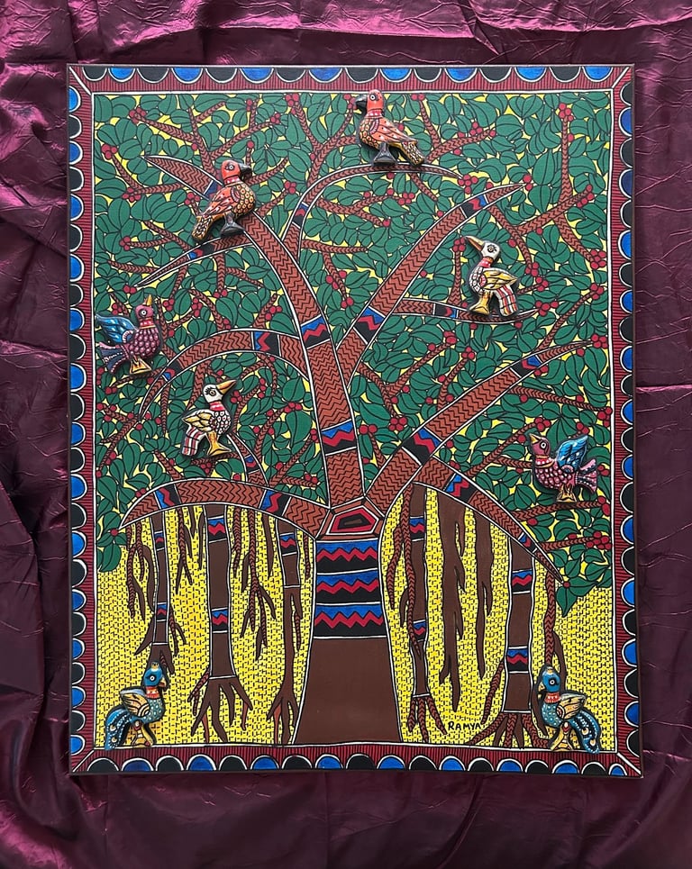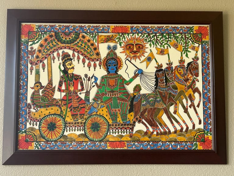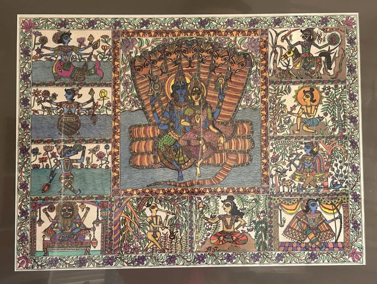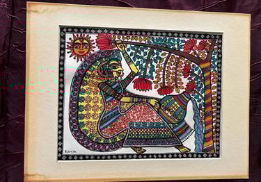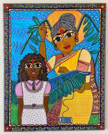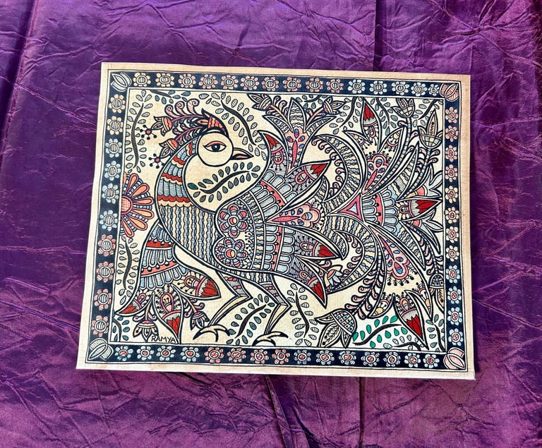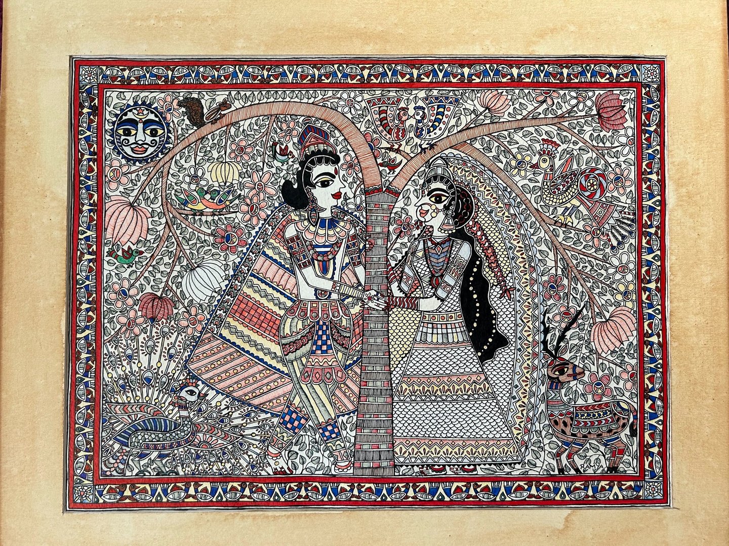 Madhubani art, deeply entrenched in India's folk traditions, served as a powerful tool for imparting cultural knowledge to younger generations. Within the ancient Mithila region, now in Bihar, India, the walls of homes and communities were once adorned with these captivating artworks. These intricate depictions not only adorned spaces but also became vivid storytellers, narrating tales of cultural practices, family life, societal norms, and festive celebrations to those who beheld them.