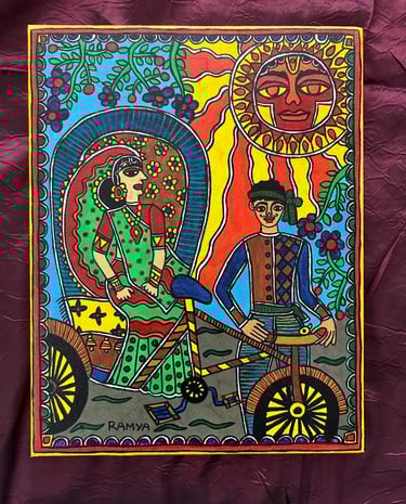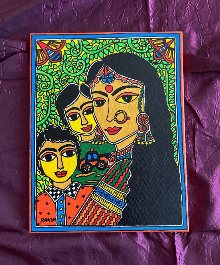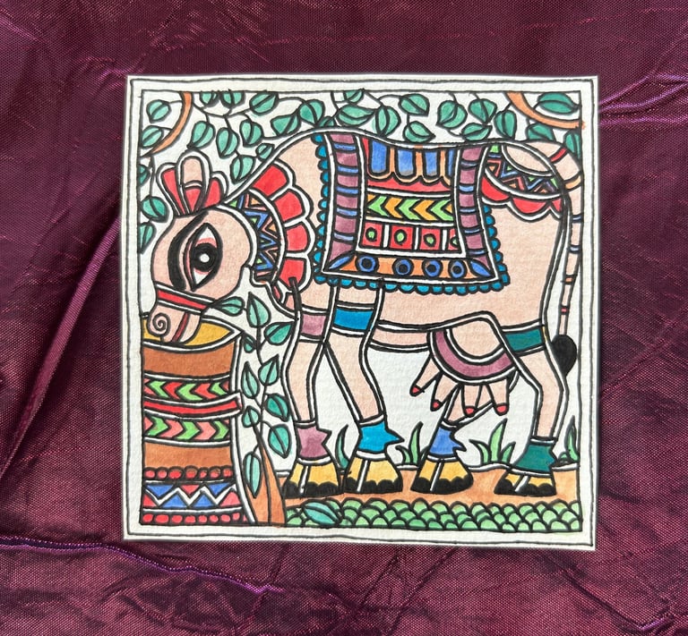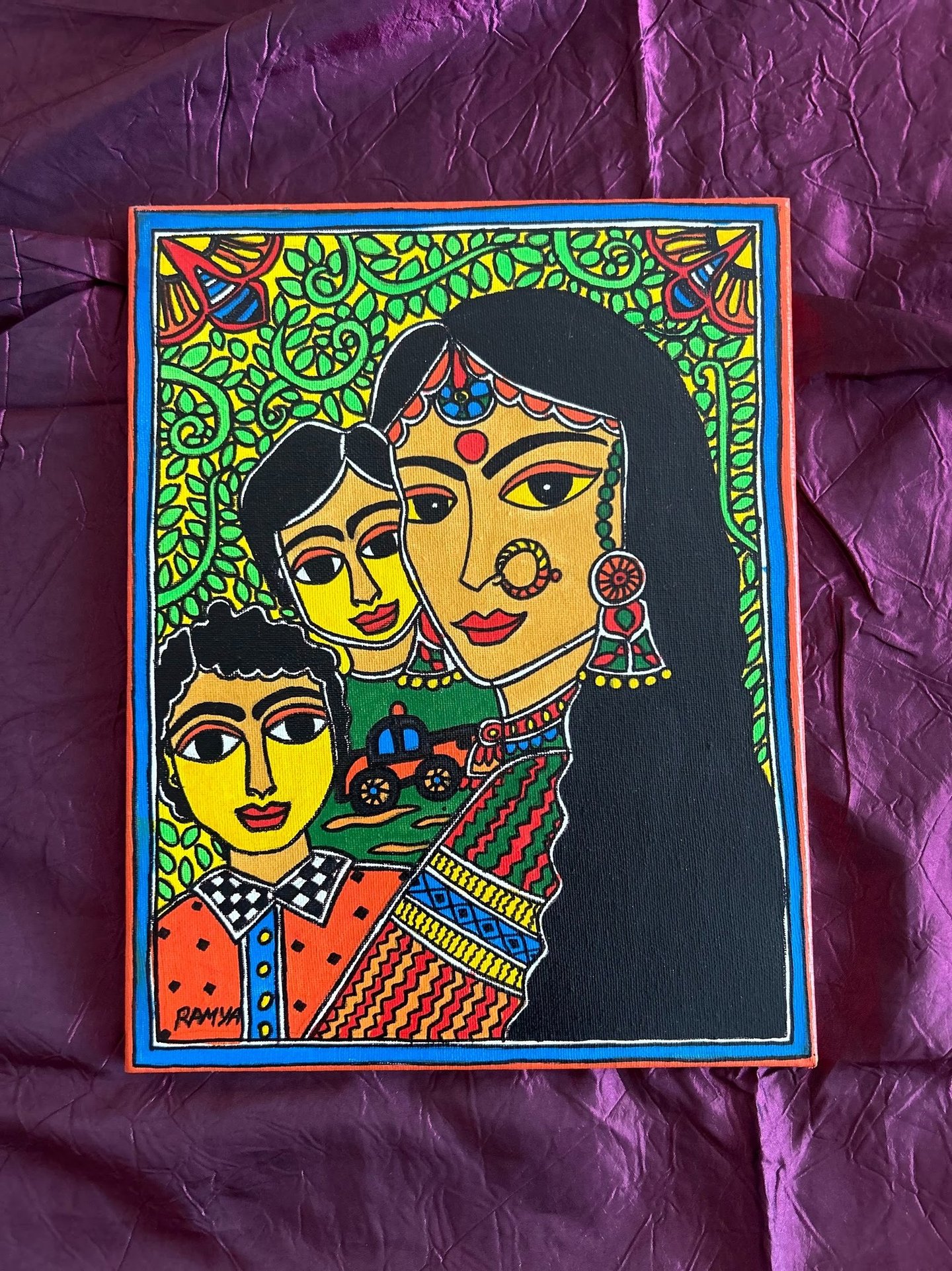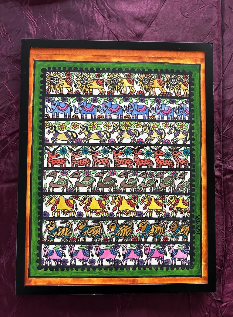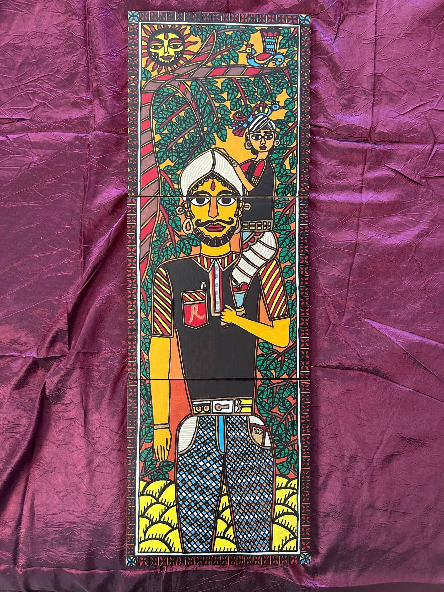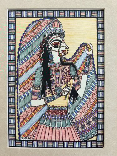 Immersed in the captivating Bharni style of Madhubani, I've crafted personalized portraits that transcend the ordinary. Inspired by this rich tradition, these portraits are more than mere renderings—they are bespoke creations tailored for friends. Infused with specific details, each stroke and hue meticulously captures the essence of their individuality, ensuring a harmonious fusion between their distinct features and the vibrant allure of Madhubani art.
