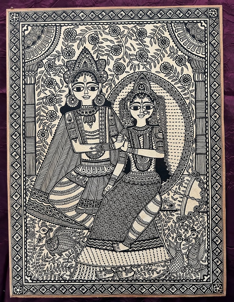 Embark on a journey back to the 8th or 7th century BC, where legend has it that the roots of Madhubani paintings were sown. King Janak, the illustrious ruler of Mithila, ignited this artistic legacy by commissioning skilled artists to immortalize his daughter Sita's nuptials with Prince Rama throughout the kingdom. This enchanting tale serves as the genesis of Madhubani art, where the vivid portrayal of Hindu deities and the jubilation of their festivals became synonymous with the rich tapestry of traditional Mithila art.